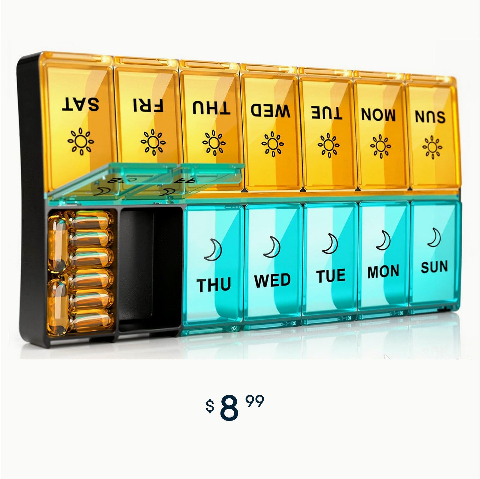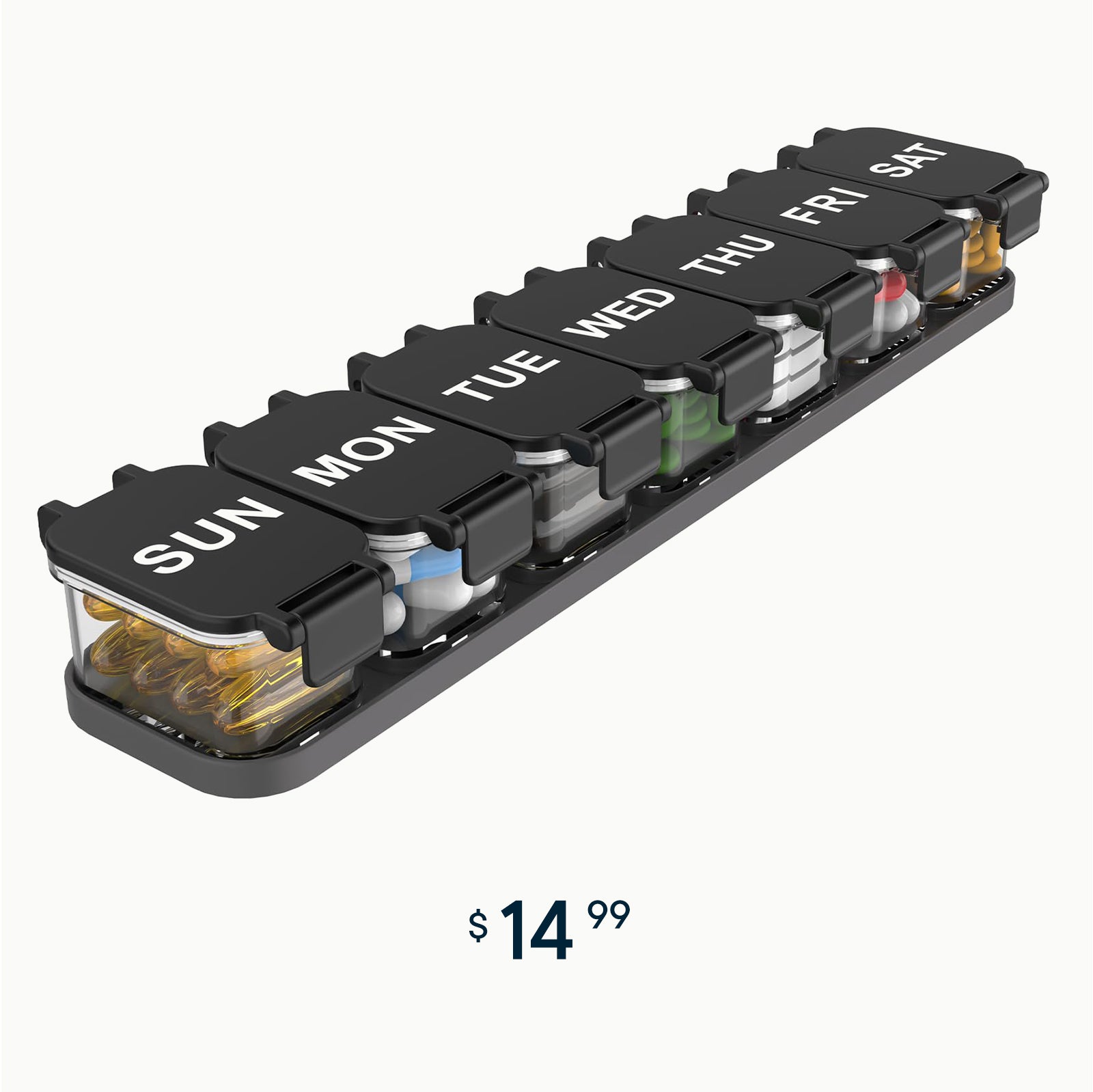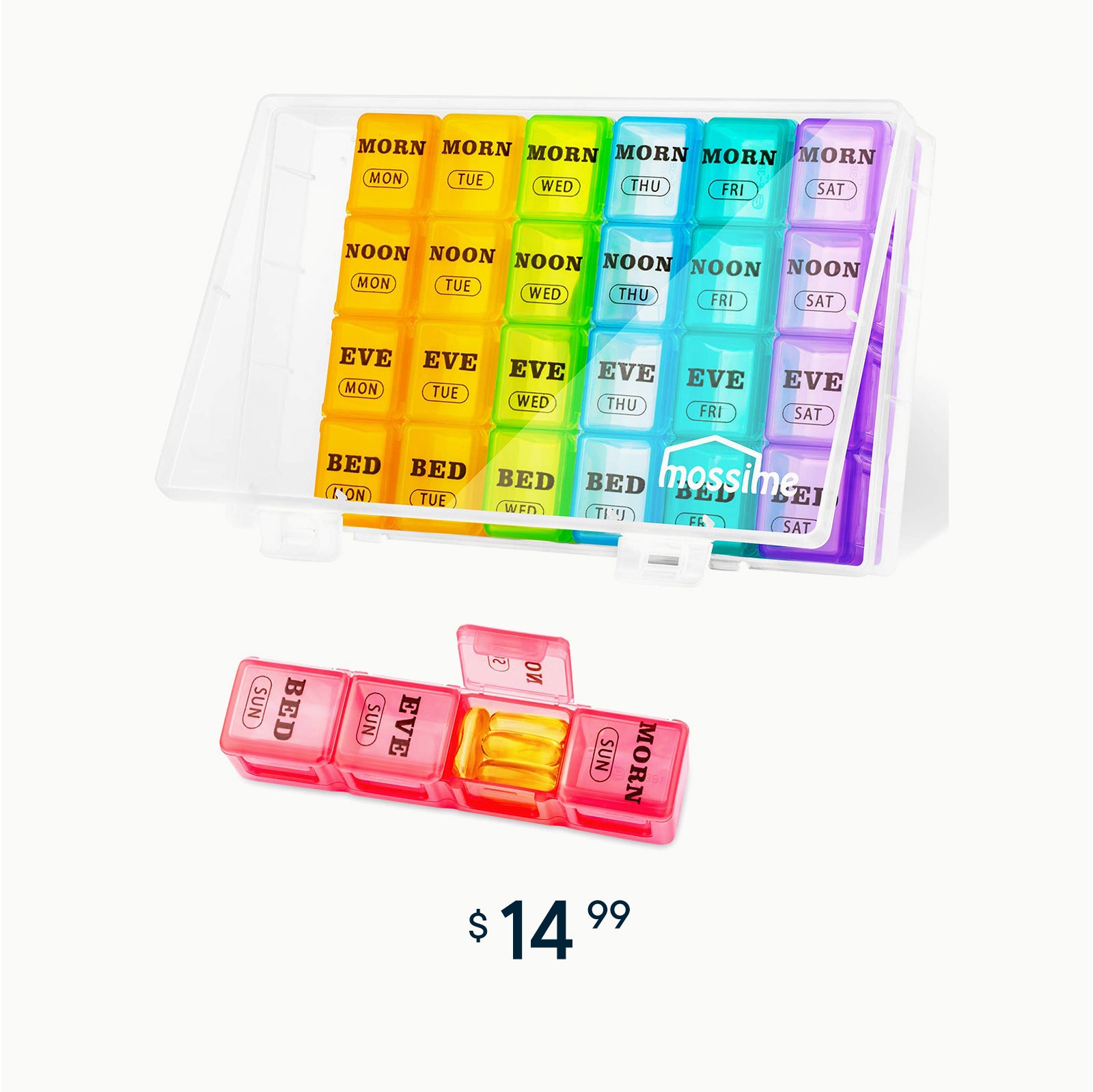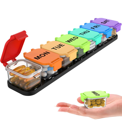 Extra Large Weekly Pill Organizer 7 Day - Portable Daily Pill Box with 7 Detachable Compartments, Vitamin Holder and Medicine Organizer for Supplements, Home and Travel, Rainbow